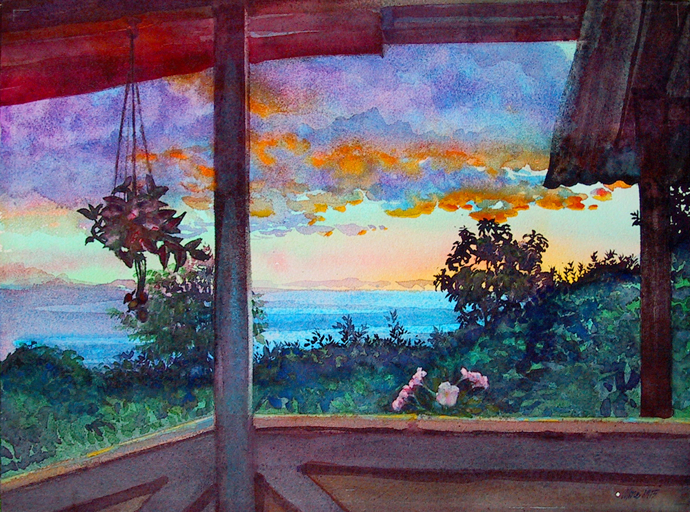 1977 “There, at the Hilton Hotel, was the opportunity to create portraits for the visitors. There were numerous exhibits of my watercolors and I led many workshops throughout the Islands.” “I began to paint once more and had five one-man shows. In 1980 I won the National Watercolor West award.” (Third image,’Ti Plant’)