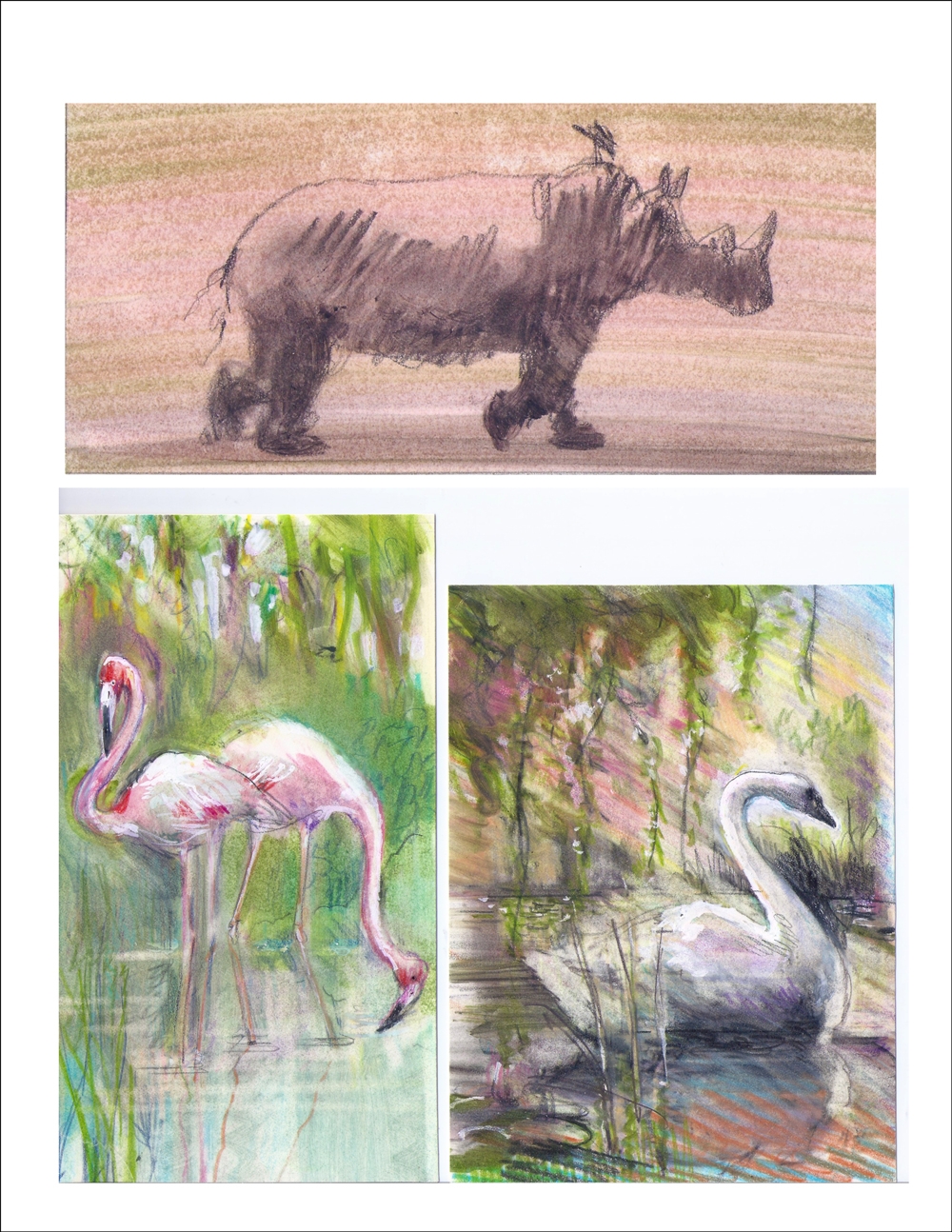 As the format of the series of pages was established, the term for pain-relief: “Flexible” gave me a wide choice of wildlife to illustrate. I told the agency’s team that there were a lot of possibilities to choose from, they said to do them all and all would be considered.